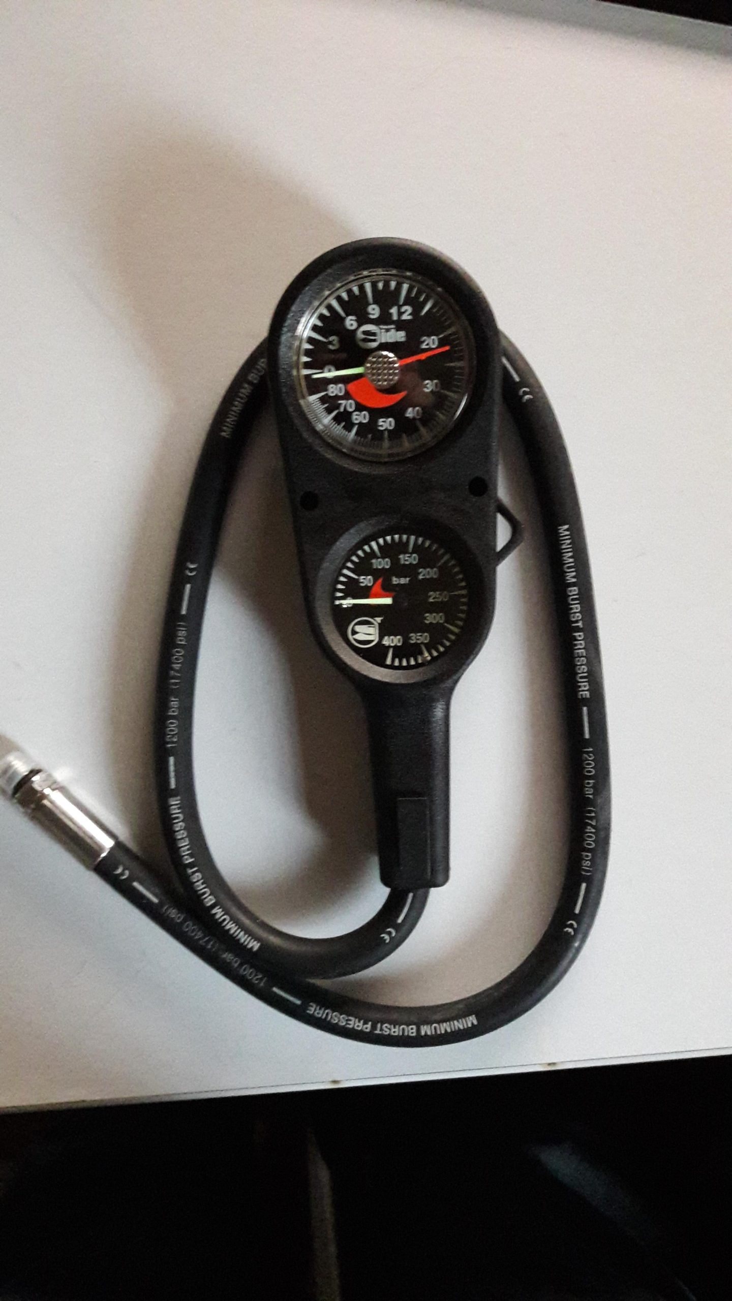 Console Tech Side composta da profondimetro su sfondo nero e numero fluorescenti e manometro con alte prestazione fino a 400 bar.